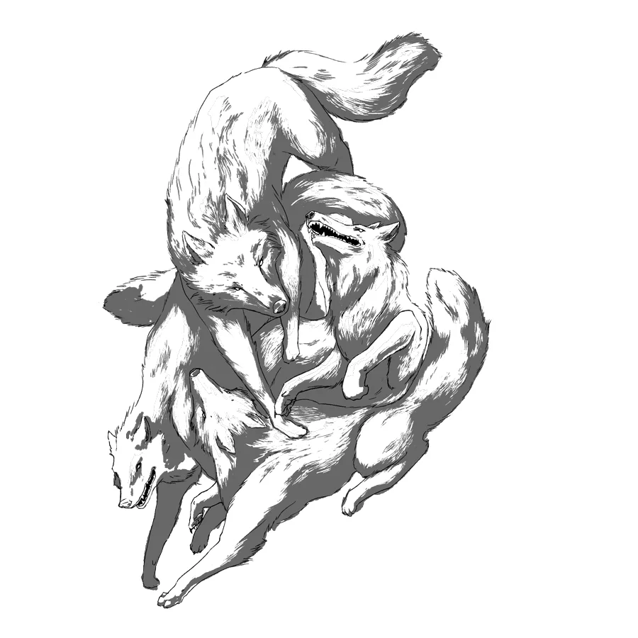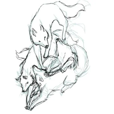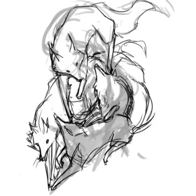The struggle is visualized within the first 6 frames and starts to form into an understanding once I get to the actual pile of dogs drawing. The client was involved in clubs and communities when I knew him and has a very strong tie with family. The pack being depicted as a somewhat cohesive turmoil is the direction I wanted to take.